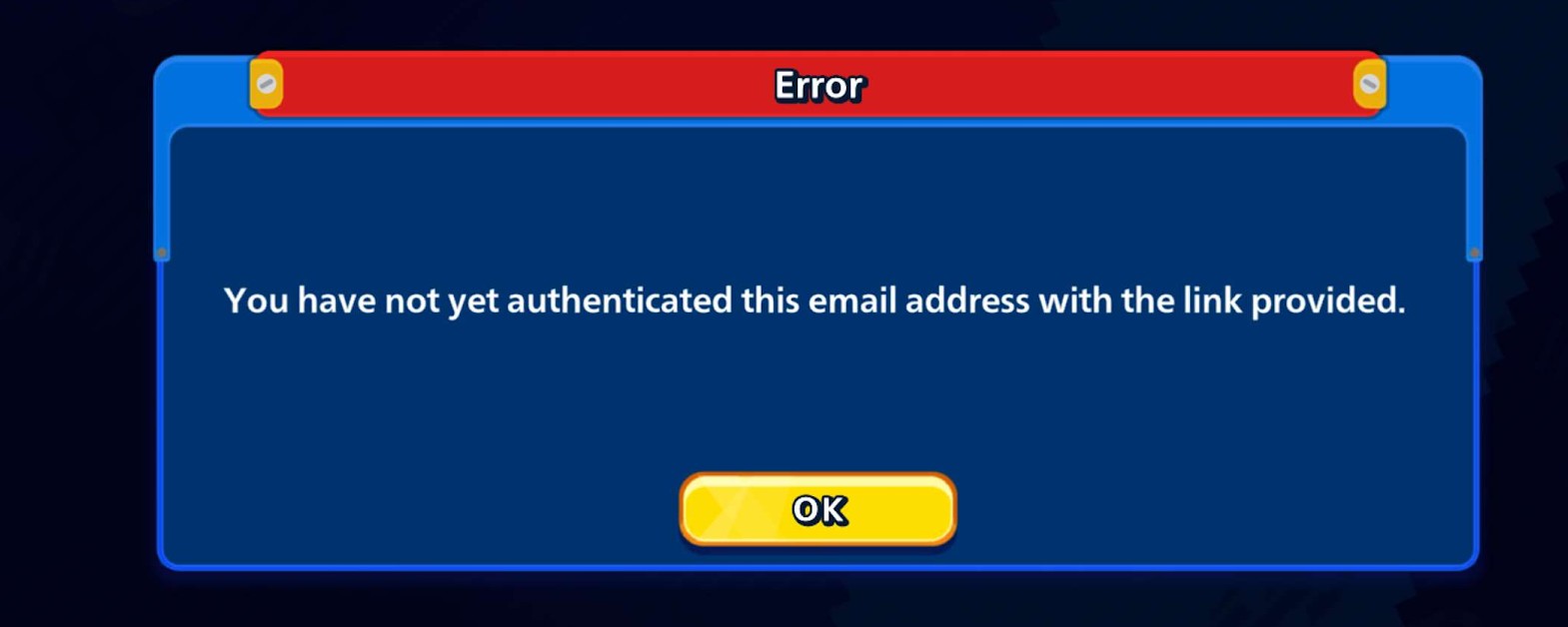 등록하신 이메일이 아직 인증되지 않은 경우 "제공된 링크로 이 이메일 주소를 인증하지 않았습니다."라는 오류 메시지가 표시됩니다.